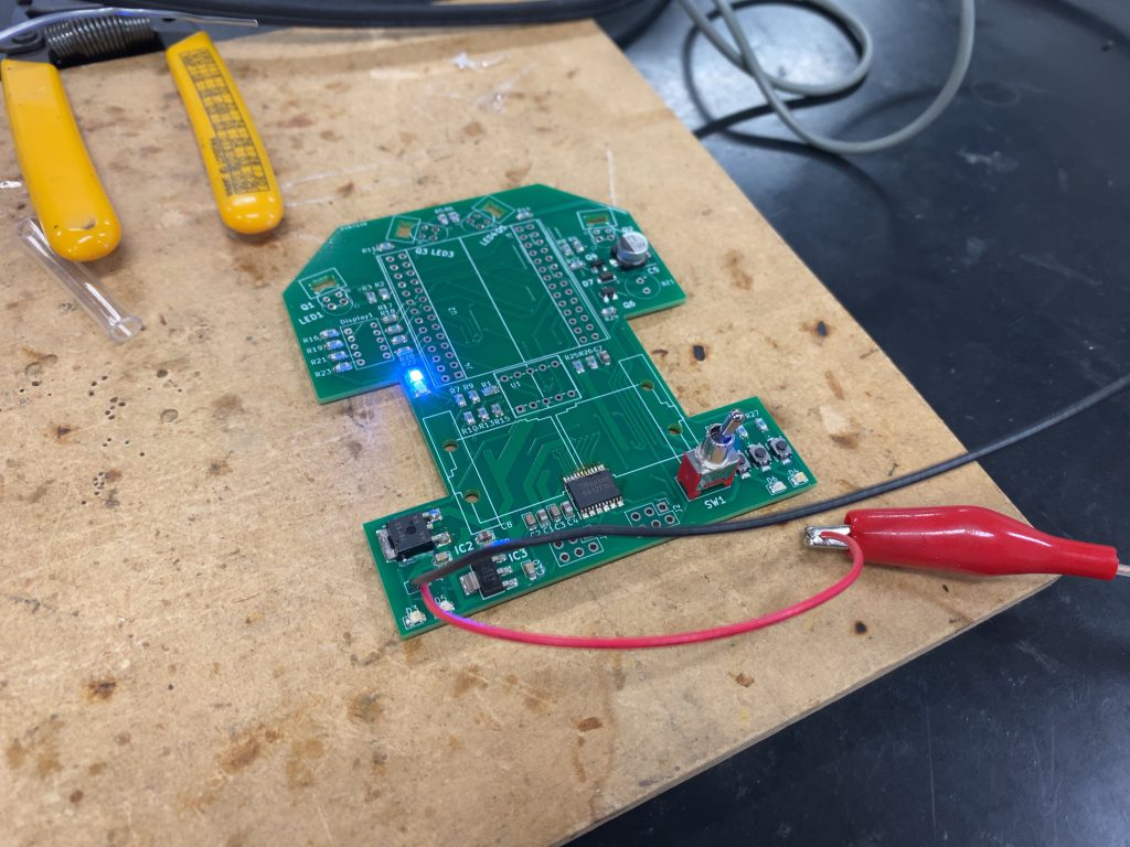 ホットプレートを使ってのリフローを行いました!終わった後に通電させると電源LEDが付いたので上手く出来たのではないかと思います!