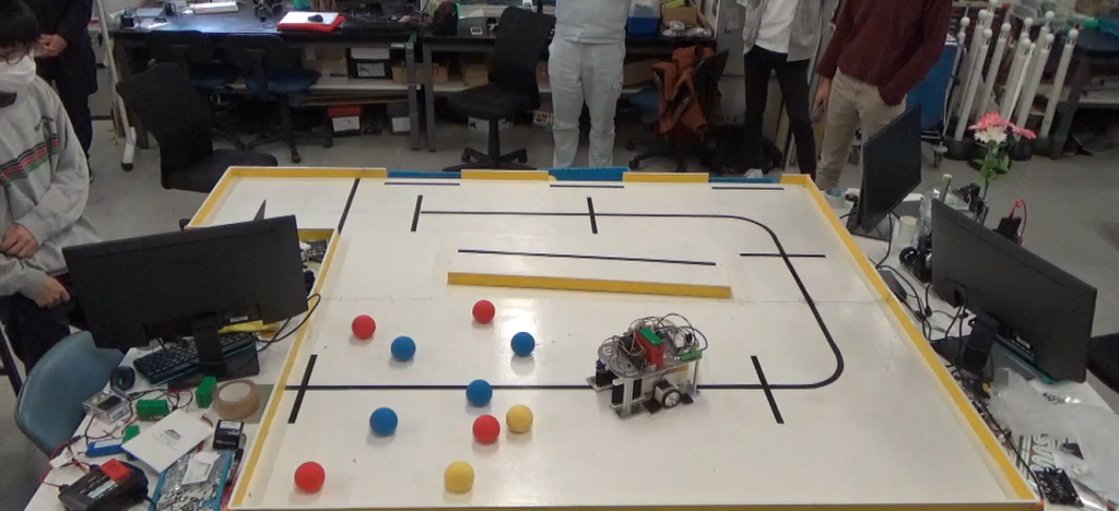 話を戻しまして部内大会では、プログラムが間に合わず一機動かなかったり、予想外の挙動をしたりとなかなかでしたが部内大会の様子は動画を作成しましたので自由工房のYouTubeチャンネルに上がると思います。