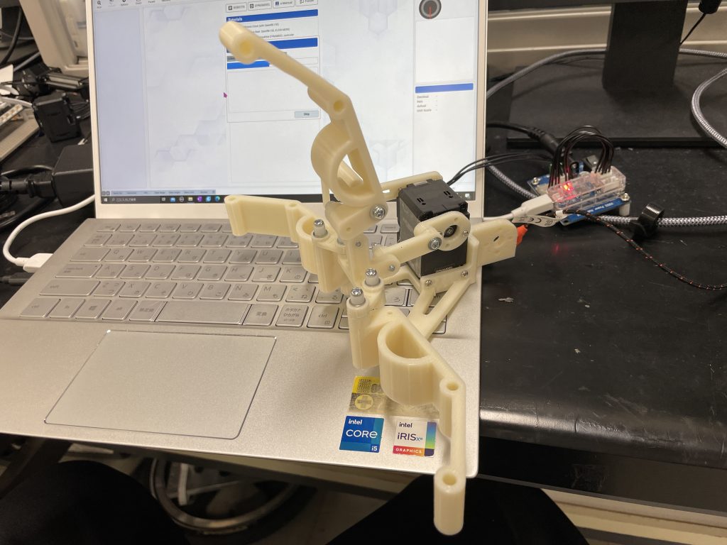 今回作成したアームは全てのパーツを3Dプリンターで作成したのですが綺麗におれました。なので新しくアルミの板を使用してリンクを作成しました。また他の力がかかる箇所も新しくアルミ板で補強しました。